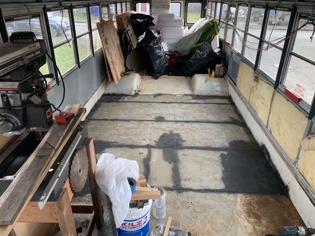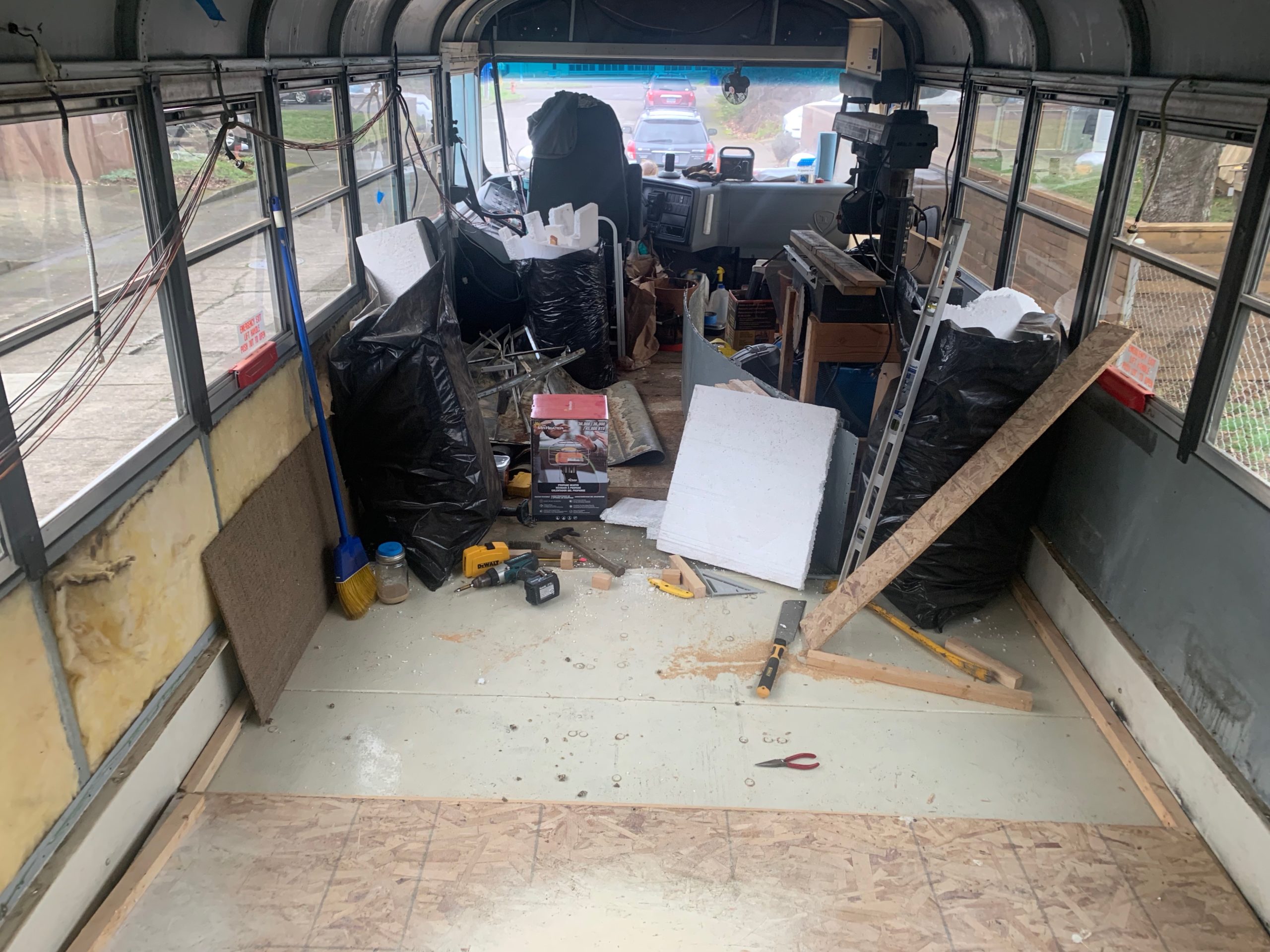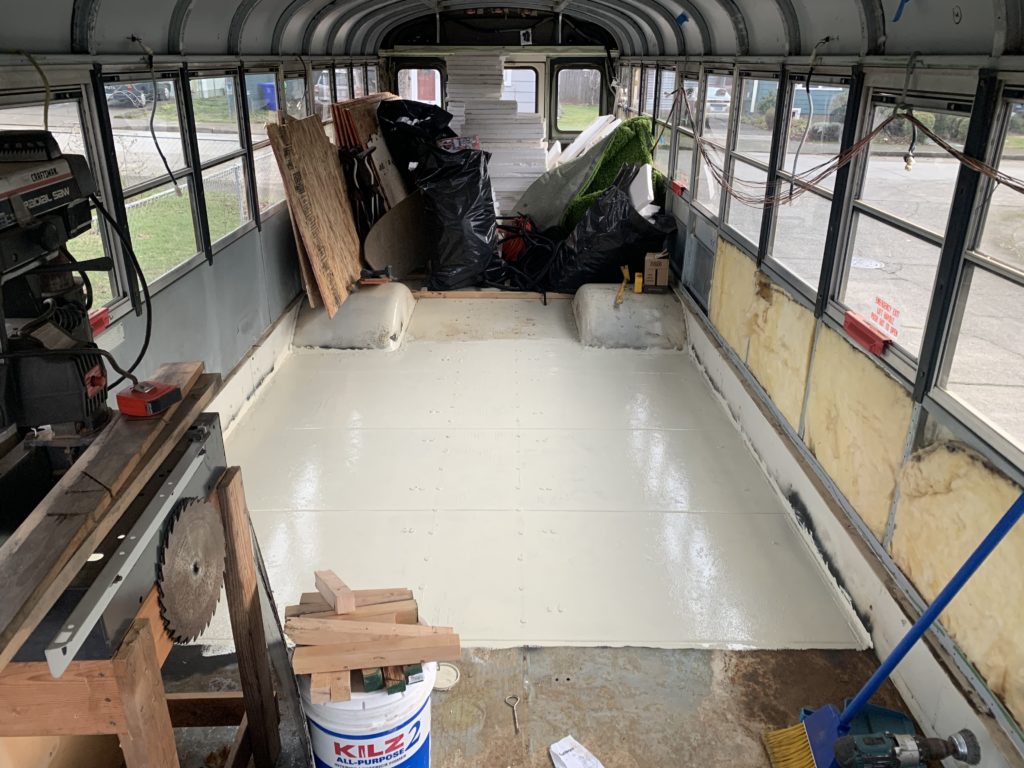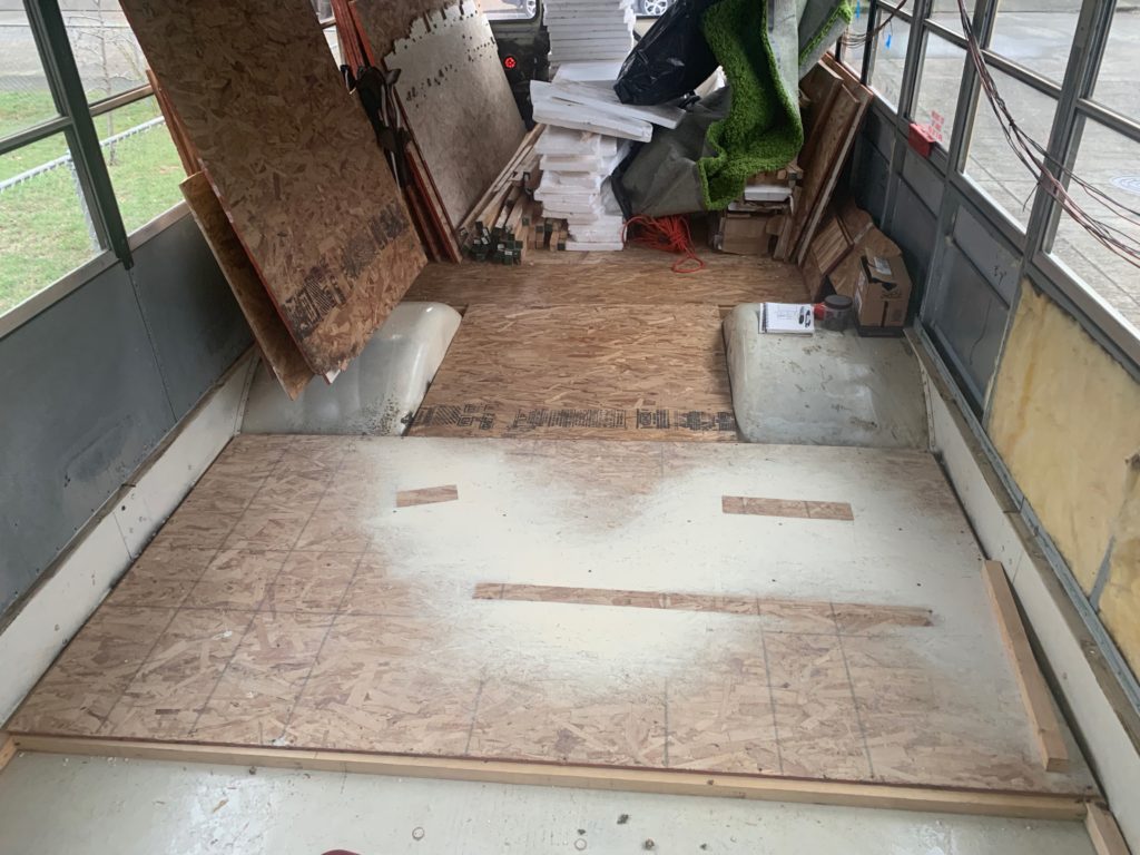 Hey, gang! Just another quick update today to show the progress on the subfloor over the last couple weeks. I continue to do the subfloor in sections, working forward from the back of the bus and moving all the build materials back to clear off the next section of floor for working. The area I finished up at the beginning of the month was Section A, and today I wrapped up Section B.