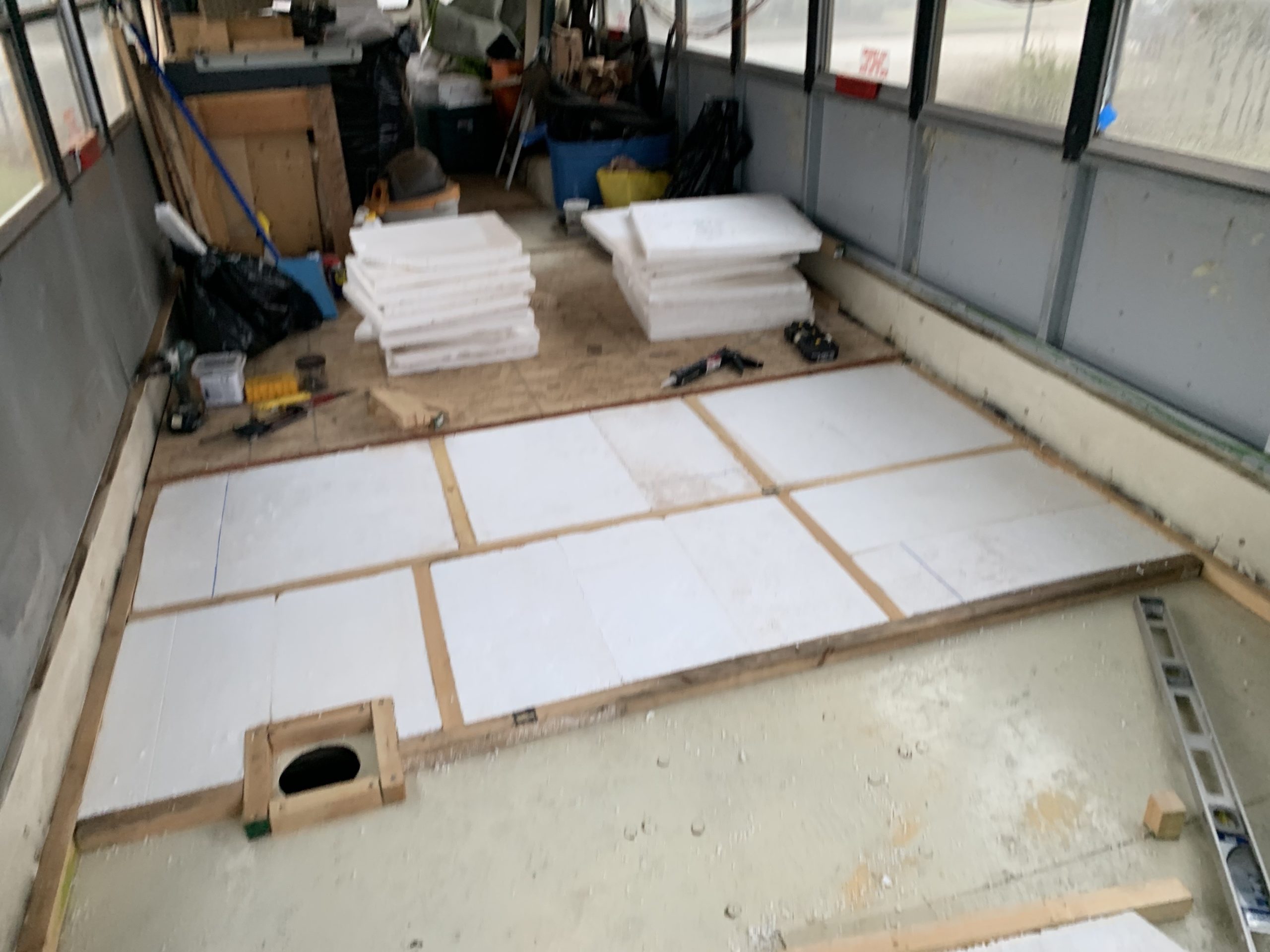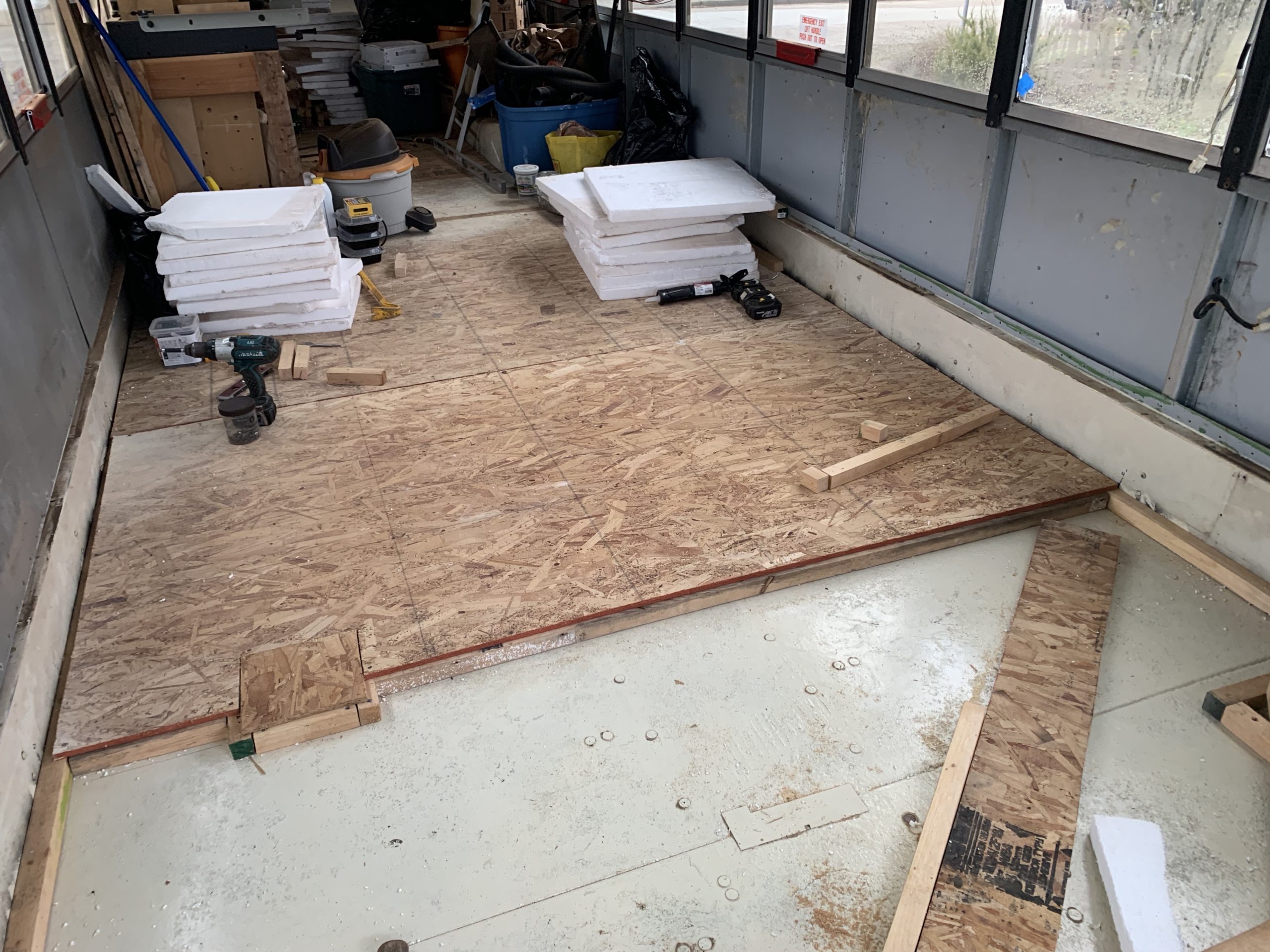 - One thing I’ve been telling myself I’d do once I had the subfloor done was going to be to bring in the set of solar panels I picked up last year and lay them down flat so I could clean them and seal the broken glass with epoxy. Not to improve the power flow or anything, just to seal the cells away from the elements. This will be time-consuming and possibly costly, but now really would be the best time, with so much open space inside.