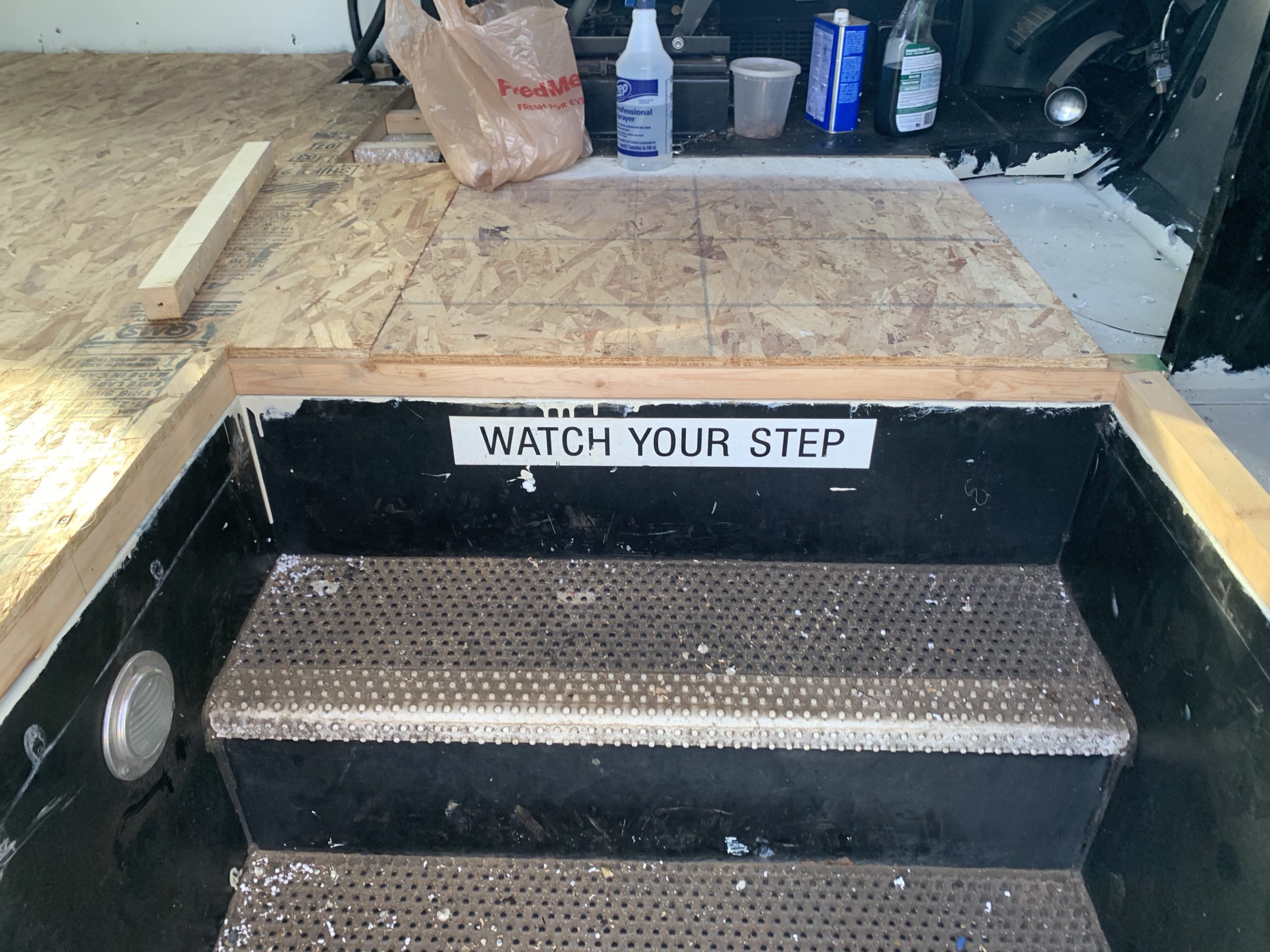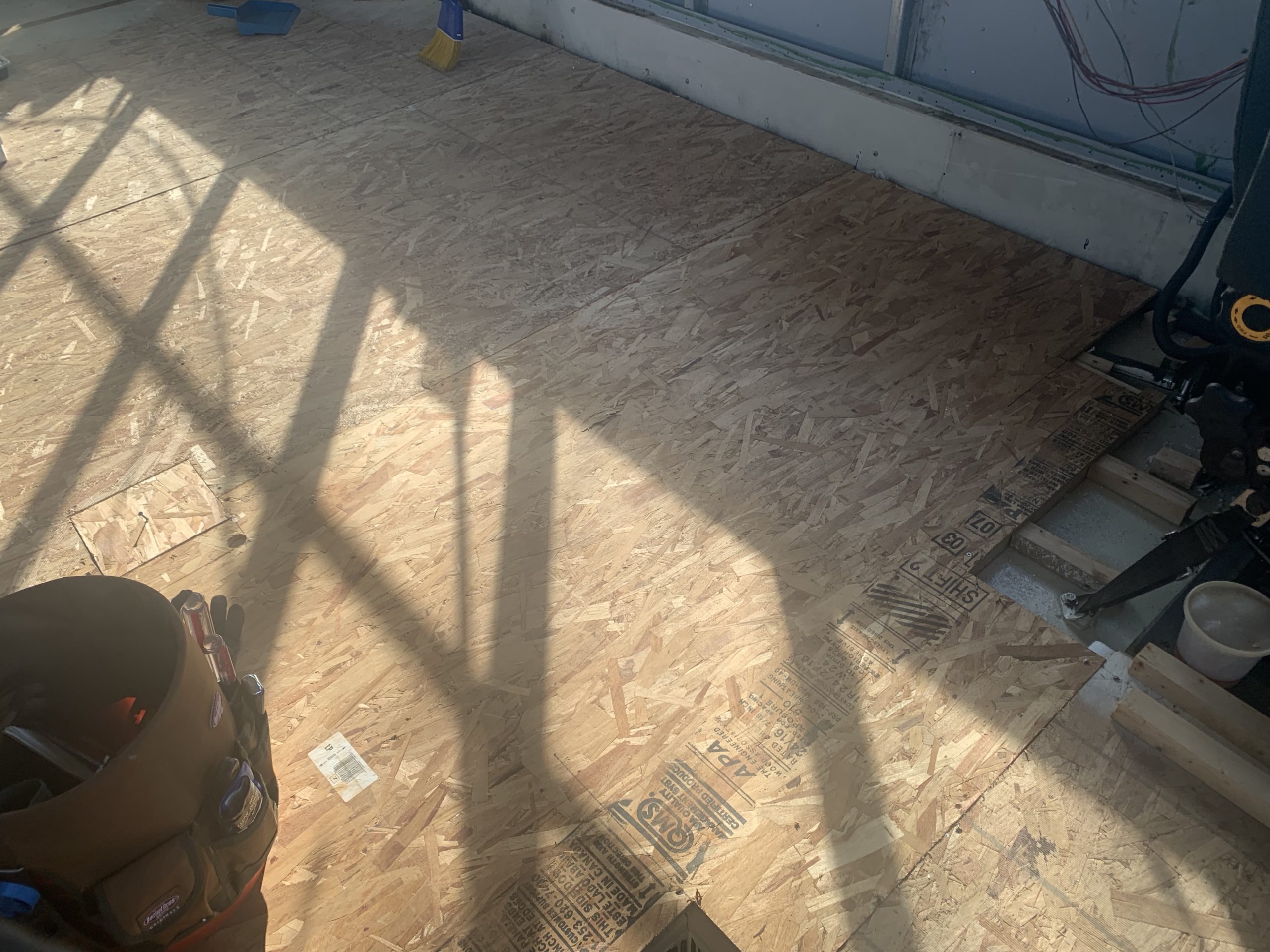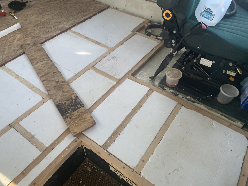 Woohoo! I finished installing the subfloor! I haven’t been able to get out and work in the bus for a few days now, so I was really itching to go make some progress. The plan was to get started early, and to give myself all day until dark. Turned out I only needed about six hours to finish it all up!