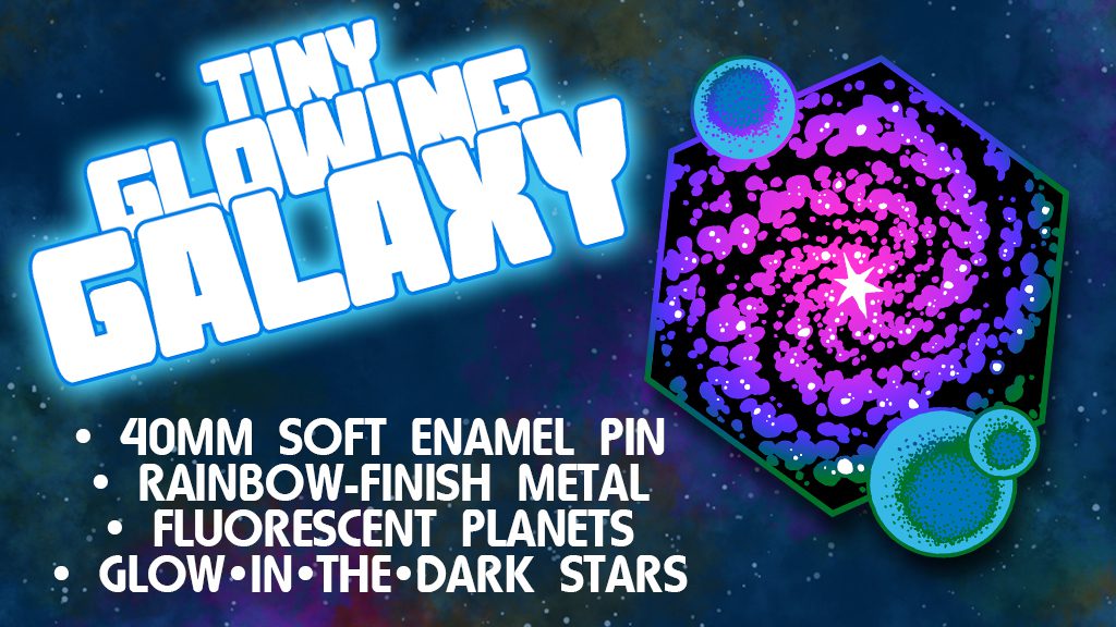 Hey, all! Next week I’ll be launching a simple pre-order Kickstarter campaign for my first ever enamel pin! It’s something I’ve been wanting to do for a while, and I’m really excited about seeing these little beauties become a reality. With glow-in-the-dark stars, UV-reactive ink in the Planets, and a Rainbow-finish to the metal, these are going to be some epically colorful little pins!