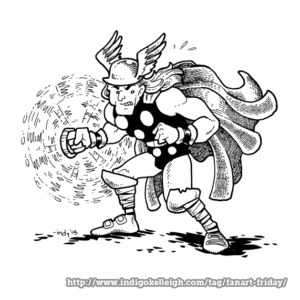 6×6 Pen & Ink on Bristol, 2013 I could have gone the movie route, since that’s the Thor I’m honestly most familiar, but I’ve always had a soft-spot for the comic’s 70s/80s costume. It’s got that great blend of impractical[…] ↓ Read the rest of this entry…