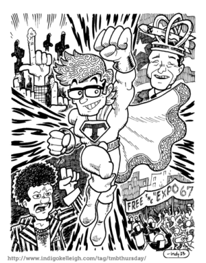 Purple Toupee and gold lamé will turn your brain around! Lincoln, track 4: Purple Toupee. (Listen on iTunes) Johnson’s Wax, the King of Cuba, Martin X, the Expo 67 Rally. This jumbled, never-quite-correct mash of political activism make this song[…] ↓ Read the rest of this entry…