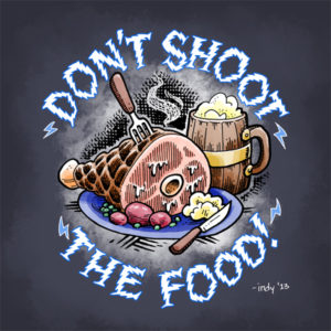 Don’t Shoot the Food! 6×6″, pen & ink, Photoshop. 2013 Part of the Gauntlet Polyptic series. This phrase haunted my dreams throughout childhood. No matter how hard I tried, I simply could not avoid shooting the food. Oh, the angry[…] ↓ Read the rest of this entry…