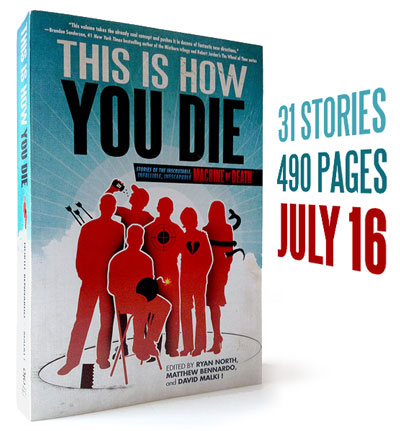 An exciting piece of news today, as one of the illustrations I did for “This Is How You Die”, the upcoming sequel to the blockbuster “Machine of Death” anthology, was used in their latest preview! I’ve been wanting to share this artwork for almost a year, and now you can finally see a peek at one of the pieces I did for “Apitoxin”.